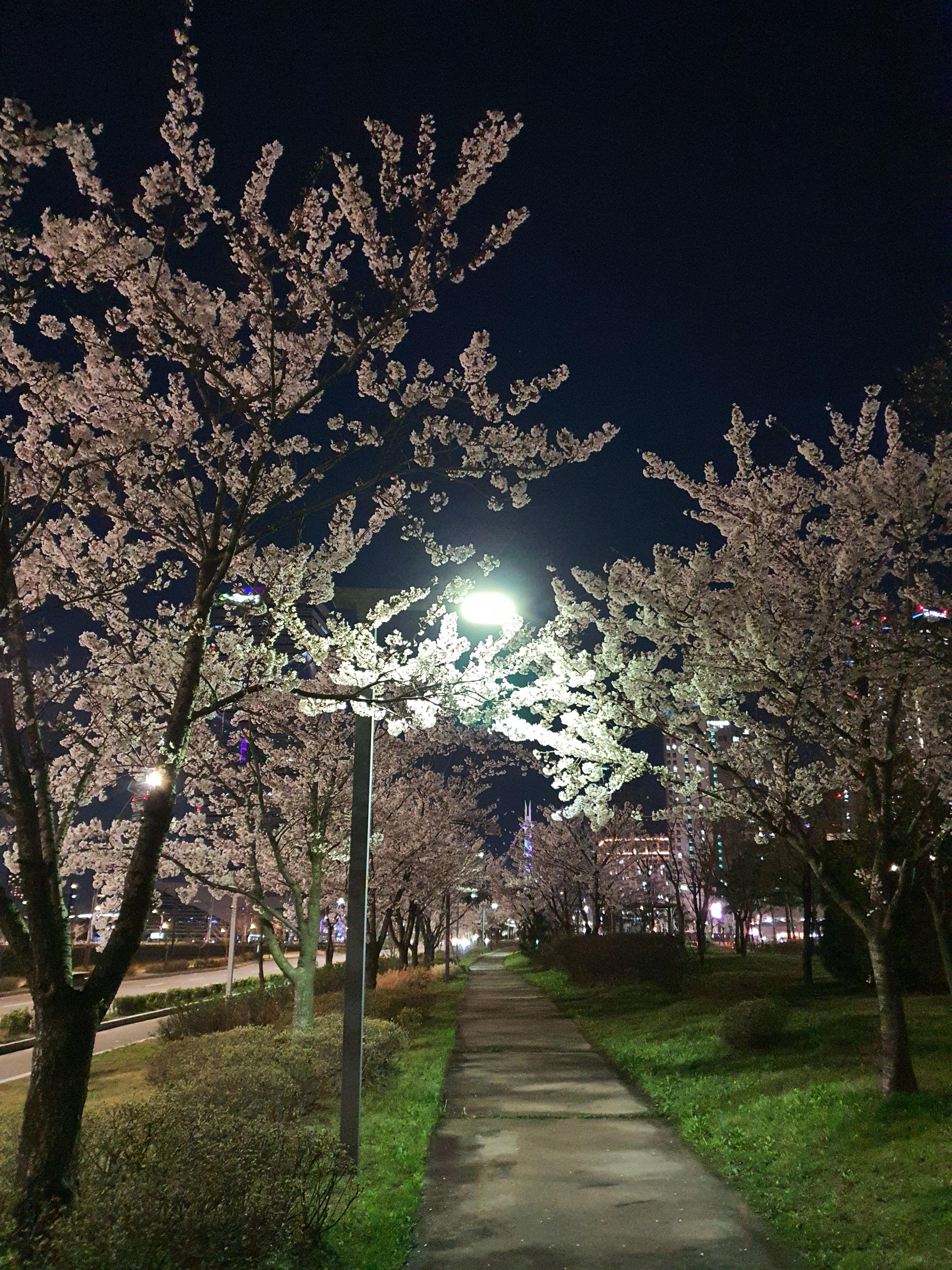 봄 바람 맞으며 벚꽃길 걷는 밤은